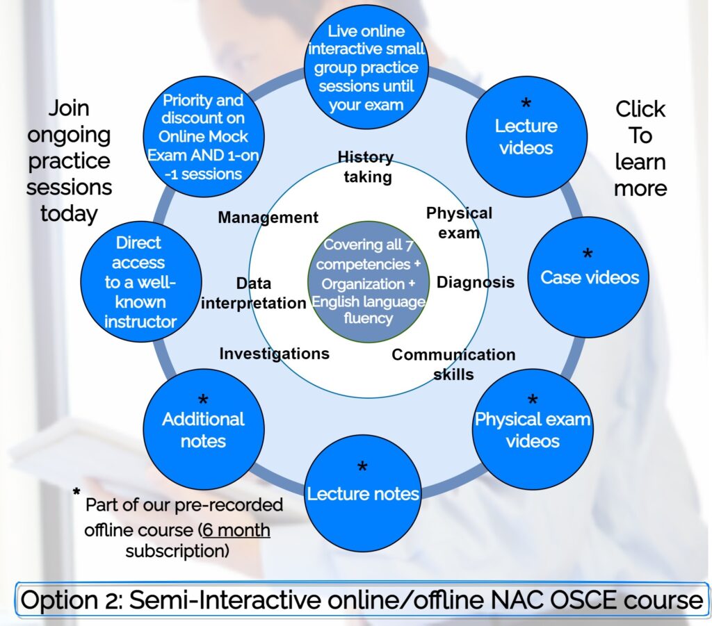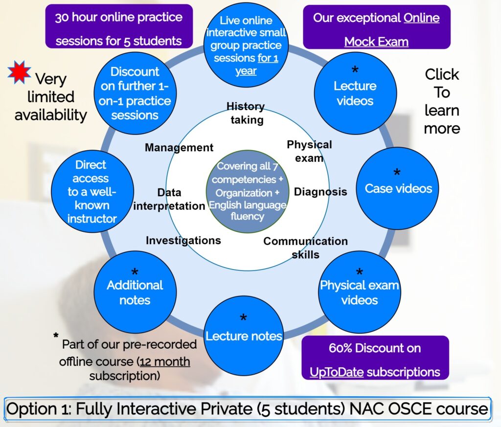 - Fully Interactive Private (5 students) Online NAC OSCE course (comes with our exceptional pre-recorded/downloadable course)