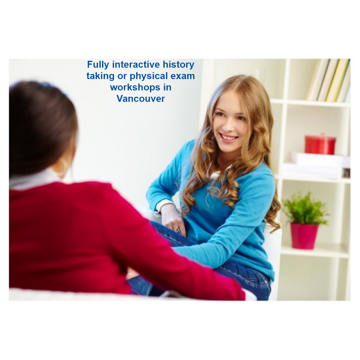 Our workshops are fully interactive with the presence of native English-speaking SPs. You will receive live and recorded feedback. We offer 1 day of history taking only workshop, 1 day of history taking/counselling and 1 day of physical exam (mainly) workshop. There is usually a gap between our workshops in Vancouver. Our history taking and history taking/counselling workshops are offered to 4 students and our physical exam (mainly) workshops are offered to 5 students.